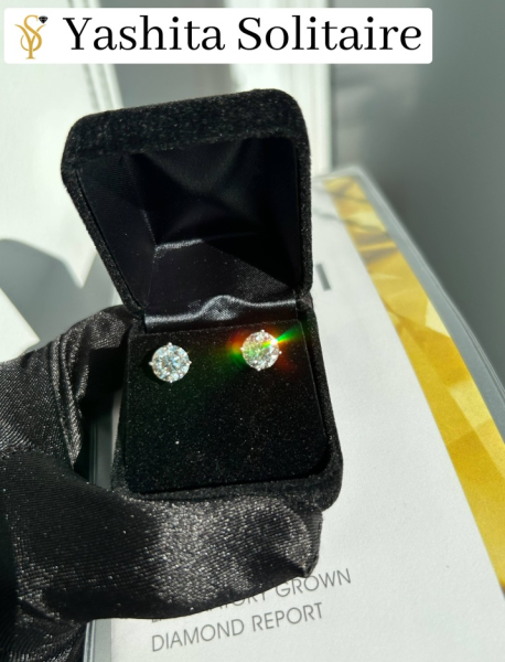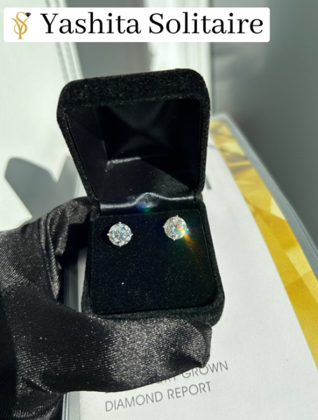 4 CTW Lab-Grown Diamond Earrings Make a bold statement with timeless sparkle and fine craftsmanship. Total Weight: 4 Carats (2 ct each) Certification: IGI Certified Clarity: VS Color: E Metal: 14K White Gold Back Type: Push-Back Secure Fit Diamond Type: Lab-Grown (Ethically Created) Designed for brilliance and everyday luxury — these earrings reflect refined taste and unmatched value.